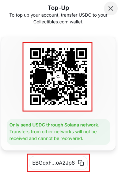 The wallet is your digital account on Collectibles.com, where you store funds to purchase Repackz. You can fund it with cryptocurrency (USDC via Solana) and use it to pay instantly without entering payment details every time.