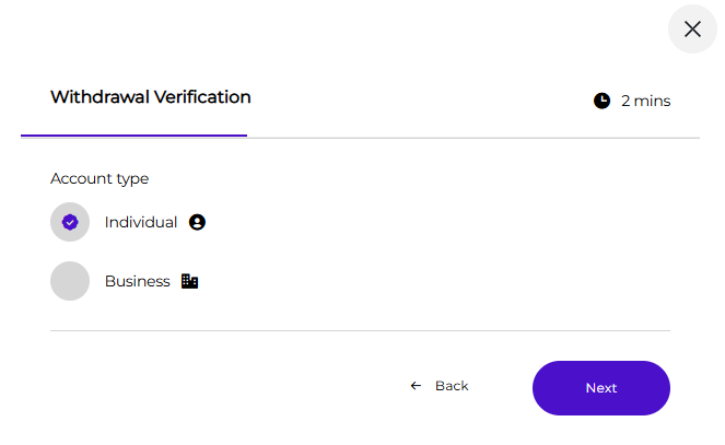 Choose your account type (individual or business).